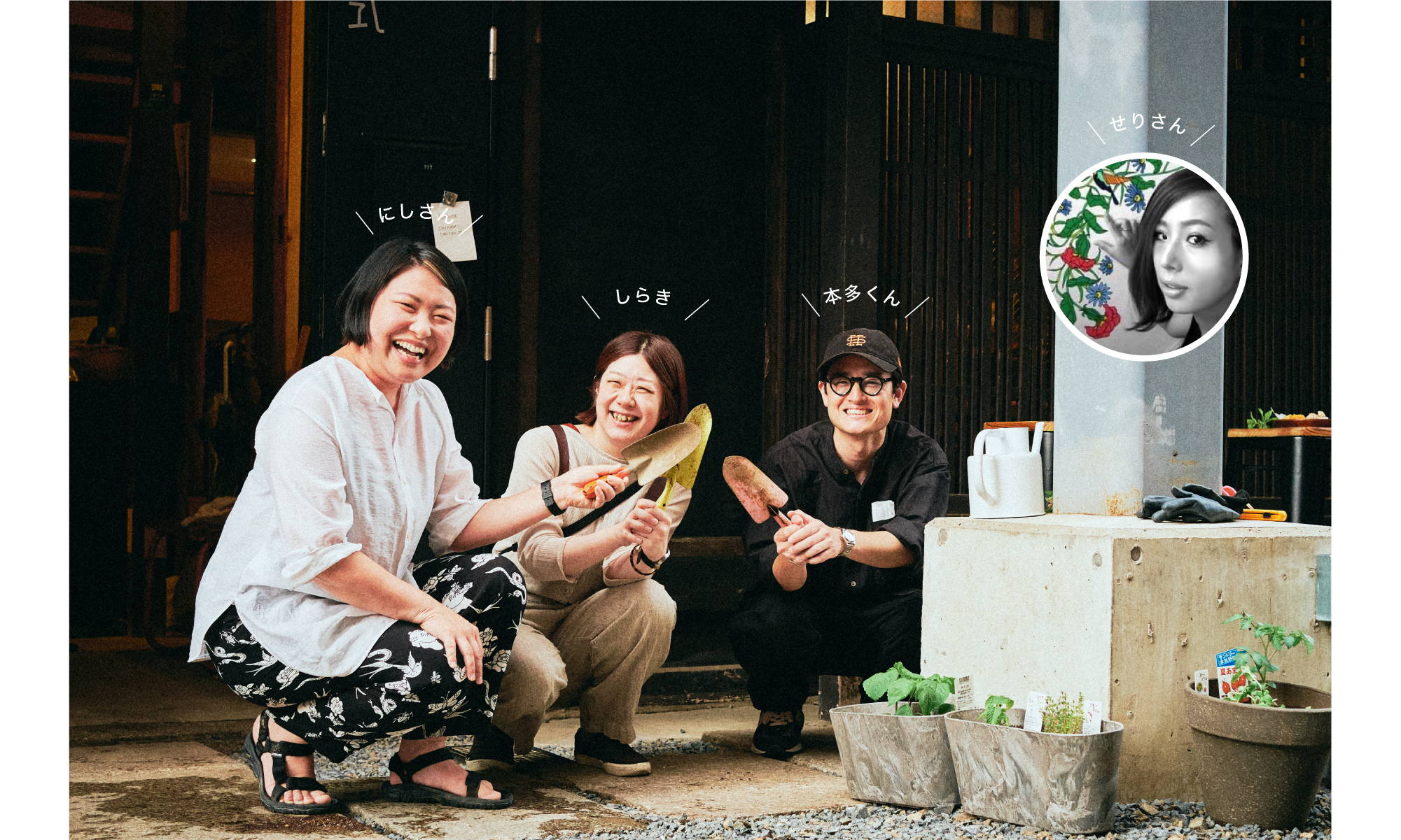 メンバーはNue inc.の西さん、CruXparkのせりさん、フリーデスクメンバーの白木です。初回はアドバイザーに本多くんを迎え、ホームセンターで苗を選び、植え付けました。