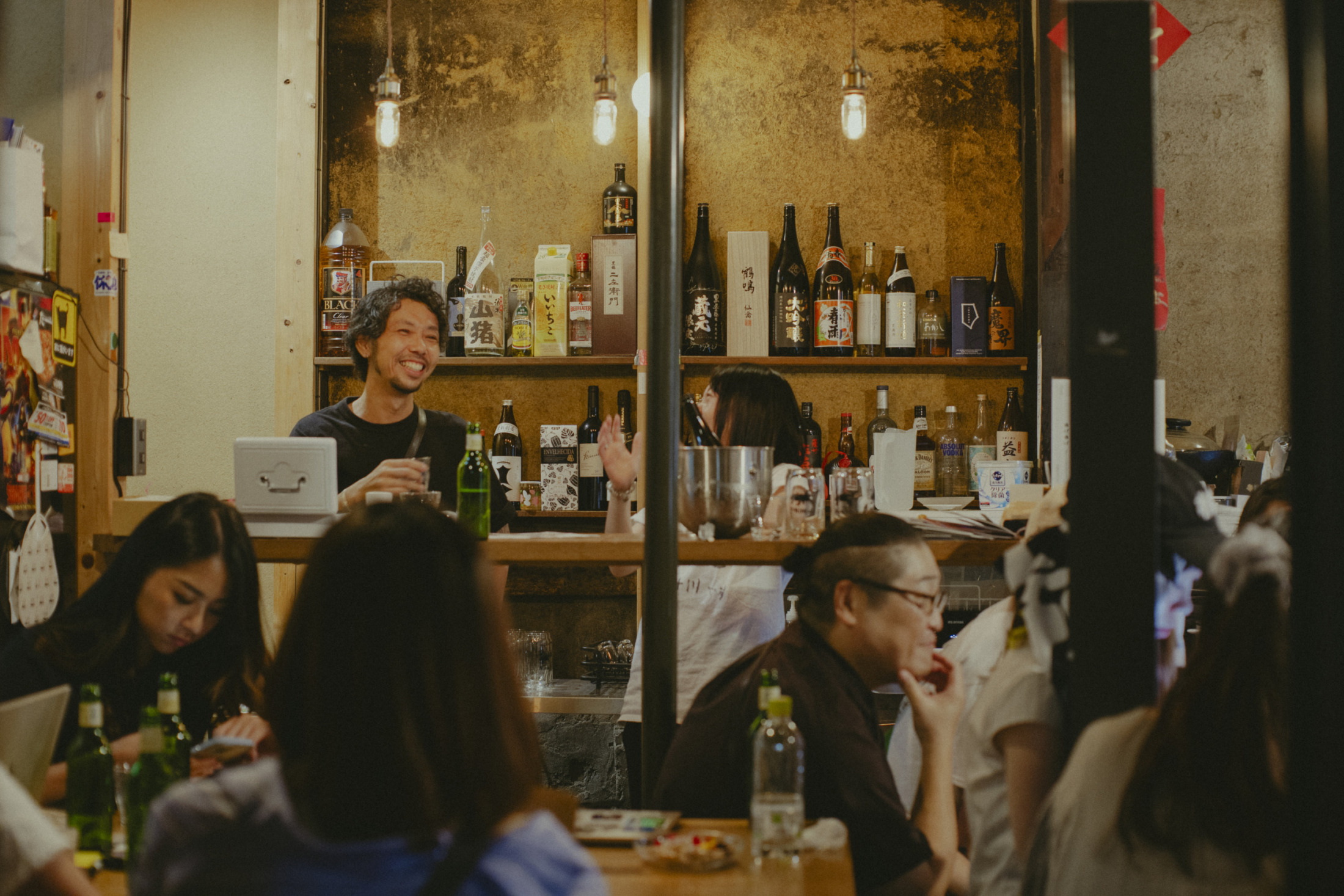 町家のなかでは「おなやみ酒場もんもん」。にぎわってます
